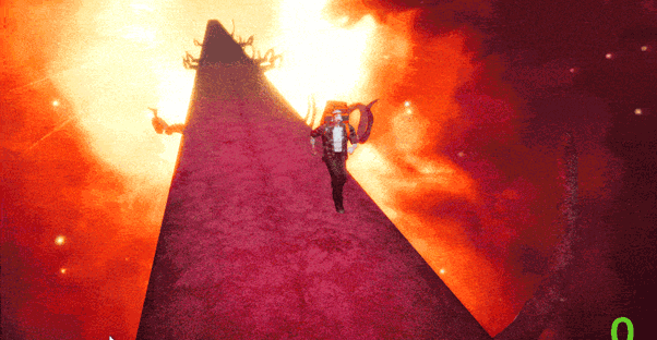 And of course you have your enemies! If you thought that this Sun with giant teath and eyes, similar to oceans of lava and flame, is the worst person, you are wrong. The worst are things of your ex world. Everything you ever dreamed of. Or if you were privileged enough maybe you even used them: a house, a cat, a toilet. A fridge. A tree You had to be careful with your wishes, because now you have them all flying right on you - jump, or face them with your face and die.